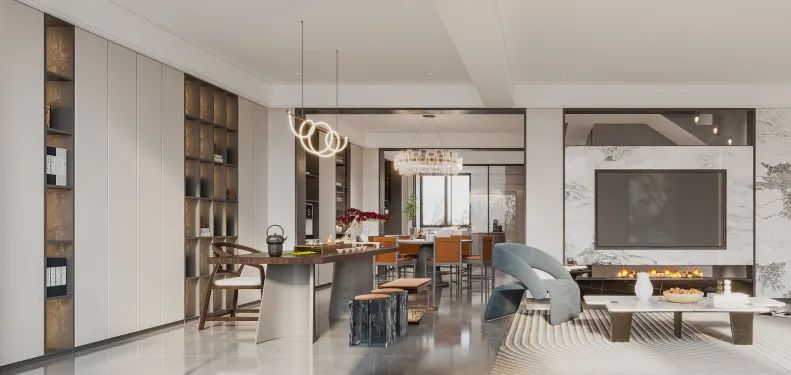 装修需求 本案家庭结构为业主夫妻和已经工作的儿女,平时都居住在市区,工作繁忙。 · 要把这套房子打造成功能舒适、美观高雅的度假房,用作假期里一家人团聚,享受慢生活,以及晚年养老。 · 房屋原为毛坯房,希望把地下室和楼顶统统利用起来,最大可能扩大居住空间,增加更多生活私享功能。 方案设计 既然要打造一个畅享生活的“度假区”,设计师便在美观与实用的基础上,充分结合业主一家的兴趣爱好,用设计来满足各项个性化需求。 平面设计图 ▲ 负二层平面布置图 · 地下二层是一个隐蔽的全暗空间,是影音娱乐、酒类茶叶窖藏的最好区域。 · 原房屋仅有楼梯来上下通行,很不方便,就重新规划区域特别打造电梯,并围绕电梯设计安全通道。 ▲ 负一层平面布置图 · 负一层连通车库与室外下沉花园,打造为会客区、健身区及保姆生活空间。 ▲ 夹层平面布置图 · 原地下一层层高有4.7m,于是改建一层夹层位用作卧室,充分利用纵向空间。 ▲ 一层平面布置图 · 一楼将客厅、茶室、餐厅、西厨及玄关全部连通,开阔一体式空间,提升通透性。 ▲ 二层平面布置图 · 二层为静态起居空间,主卧套房、次卧及书房等私密性较强的空间均设于此。 ▲ 顶层平面布置图 · 顶层室内房间改造为舒适的卧室套房,室外空间则加盖玻璃顶打造为阳光房会客厅,结合家政房、露台等,实现更多居家功能。 位于负一层的会客厅,保留挑高设计,采光通风效果优越,增添了整个家居环境的气质与大气感。 定制岩板壁画装饰背景墙,结合金属装饰线条和两侧木饰面,空间饱满有层次。 全套古典红木沙发,保持了中式传统的艺术造型与浓厚的内涵底蕴,搭配素淡的山脉壁画岩板,相得益彰。 会客厅与室内的衔接空间,打造了一个端景玄关,定制岩板充当屏风,中间留空作圆形小窗,窗弦上装饰假山与迎客松,空间氛围无比灵动,迎客入家的仪式感十足。 一层的动线重新梳理,使之客厅、茶室、餐厅以及西厨连接呼应,每个区域相对开放,又通过用黑色垭口包装的墙垛划分空间功能。 茶室、餐厅、西厨并排打造通顶式储物柜,封闭式橱柜、内嵌式酒柜以及开放式隔板释放储物空间,满足各类收纳需求。 西厨也做了合理的功能布局,嵌入式蒸烤箱、玻璃柜、水槽、料理台、中岛台,增加操作与收纳空间。 中厨更具现代化风格,U型布局提供更多操作面积与收纳面积,一家人搭配下厨,丝毫不显拥挤。 大面积暖灰色系,搭配冰箱的银灰色,冷暖色调和谐融合,整体干净简洁,通透平和。 卧室的装修主色调,选择了原木色系,搭配半墙与隐形灯线设计,居室氛围静谧又温馨。 床头一侧床头柜替换成悬浮式梳妆台,不仅满足女生梳妆的需求,更营造出轻盈与视觉延伸的穿透效果。 次卧空间延续新中式的设计,定制国画护墙板打造背景墙,提升美观的同时,还提供吸音降噪等功能。 卧室套房里内藏步入式衣帽间,L型布局定制通顶式衣柜,衣服都悬挂起来,不用费心叠放整理,反而更显整洁,在黑色玻璃门与灯带的作用下,想拿取的衣物一眼可见。 下面,就是整个家装修设计的主要亮点。 业主喜欢看电影,就特别费心打造了这个星空影院。定制巨幅银幕,畅享大屏观影的乐趣。吊顶以光纤灯制作成星空图案,忽明忽暗,灵动典雅,且不带电能和热能,节能环保。 为了处理潮湿、噪音等,结构内墙面做负压防水,同时用轻钢龙骨做基层,微水泥做装饰,面贴布艺吸音板,顶部贴隔音棉,空气湿度则用除湿机和新风系统解决。 家中藏酒窖酒,那就少不了品酒区。坚硬的水墨纹岩板背景墙与圆润的弧形沙发相搭配,其余空间留白,层级丰富,干净利落。 品酒区旁边,是陶冶情操的书法区。顶面打造采光天井,自然光倾泻而下,中间放置实木大班台,书法、绘画、品茶都有了专属之地。 负一层规划了一块健身娱乐房,跑步区、动感单车区、瑜伽区,完全满足家人的健身运动需求。就近打造卫生间和储物间,方便放置运动设备和健身后的洗浴。 书房采用全景玻璃设计,视野通透,室外美景尽收眼底。吊柜与悬空书柜的组合,完美利用墙面达到收纳分类的效果,让家居室内变得更敞亮。 主卧的卫生间,桑拿区、双台盆、智能浴室镜、智能马桶、便池分离、墙排下水设计等,无一不提升私享空间的舒适度。 一层的共享卫生间,只需满足洗漱及放松功能。 洗手区设置在窗前,侧边挖槽设置壁龛,增加收纳区。放松区通过房门隔断,实现两区分离,方便多人使用。 家,不仅仅是生活起居的地方,更是承载我们的梦想、容纳兴趣、表达审美、释放个性的居心地!