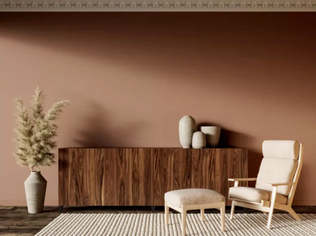 赤陶色是一种诱人的中性色,促进了与其他选择的材料和设计形式的连通性和多功能性。最好用纺织品或实木来补充赤陶色,也可以与花卉图案或绿色相结合,这样的搭配可以激发出更有层次的空间。