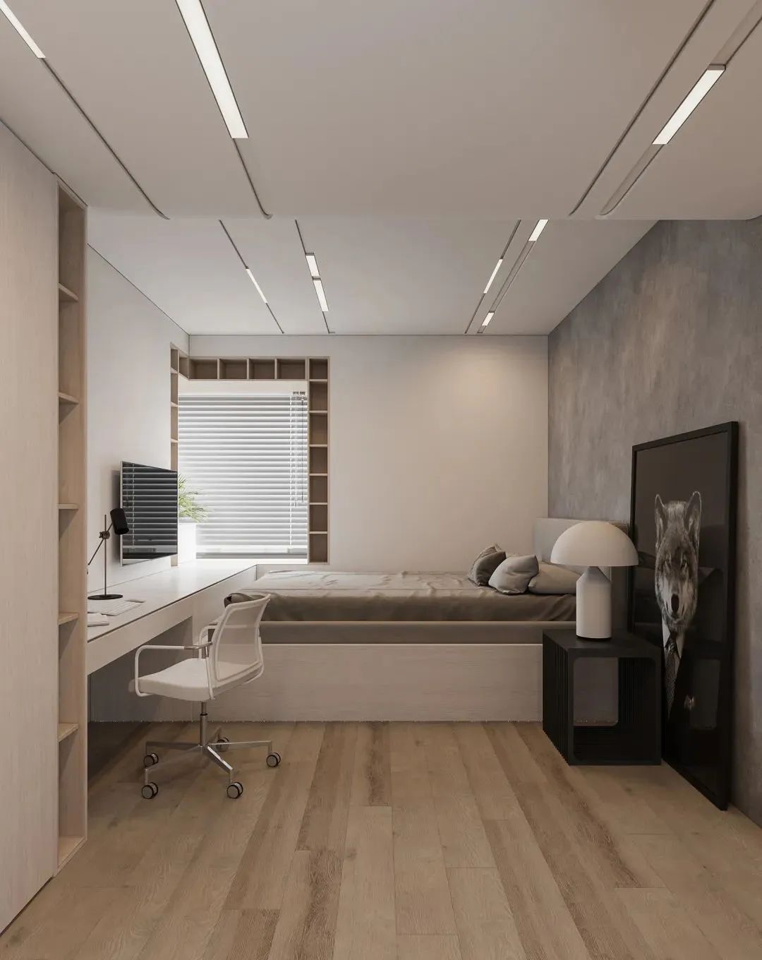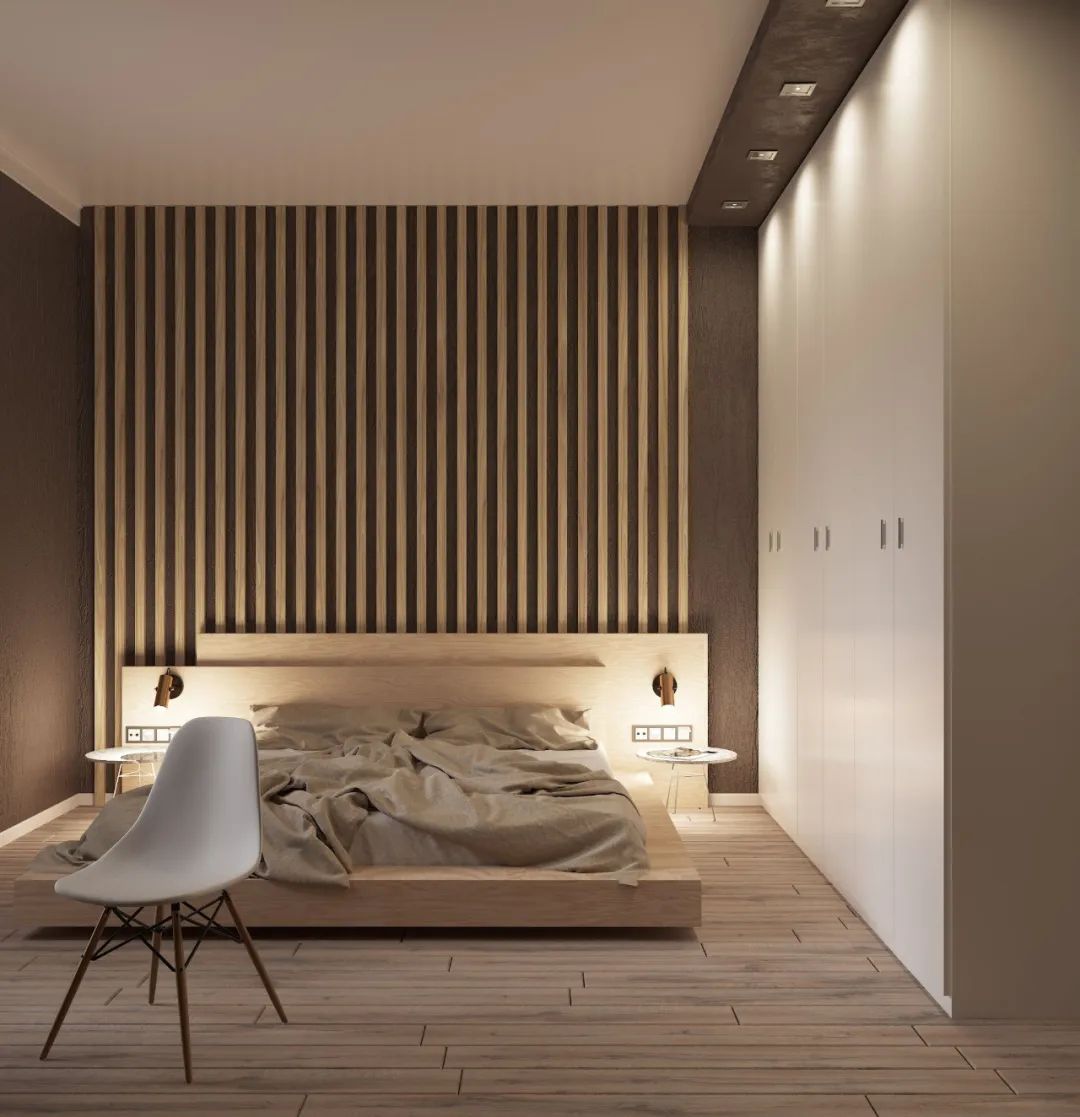 台阶式榻榻米,构建空间层次感,配合上灯带的渲染,光与影的结合,让卧室温馨感满满。