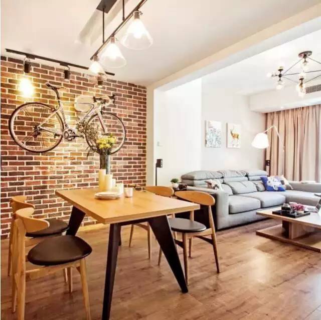 案例一 设计风格:北欧风格 相较于常见的北欧小清新,这套案例更多体现北欧民族的原始和粗矿。实木餐椅组合搭配棕红色砖墙,加上挂墙的山地车,非常有个性。 客厅内各式动物元素提升了与大自然的亲近感觉,而最大的看点在于电视背景墙,它其实是由卫生间的一面墙拆去一半得来的。刷上白漆,上方空出的部分增加了空间的透视感,也不影响看电视的功能。 主卧客卧都主打白色,简单舒适就好。客卧的搭配则带来北欧森系的感觉。书房部分是蓝白搭配,从书架的一侧衍伸出的隔板就是简单的电脑台了。 厨房采用半开放设计,黑白色调经典大方。卫生间在洗手台的上方做了浴室柜方便收纳,柜体的镜面设计代替了常用的浴室镜,一举两得。 案例二 预算:11万 这套案例为典型的美式乡村风格,选用了深色系的美式实木家具,搭配粗犷的仿古砖墙面以及灰色系的墙面,营造了时光变慢的错觉。 入户式玄关提供了收纳和换衣换鞋的便利。落地灯与脚凳、茶几的搭配如临传统的火车包厢。 将卫生间拆除一半墙体做成矮墙,达到干湿分区方便功能上的使用,而在视觉上也扩宽了整个空间的视觉效果。 餐厅和半开放的厨房相邻,虽然不是很大,但业主依旧靠墙设计了一排酒柜。包括餐边柜和百叶窗的设计,没有过多繁复的装饰堆砌,只关注质感的沉淀。 主卧部分扩宽两边墙面,对称式的嵌入式衣柜增加主卧储物空间,也让床头不显单调。沙发、书柜、落地灯、书房的闲情雅致被构建得恰到好处。
