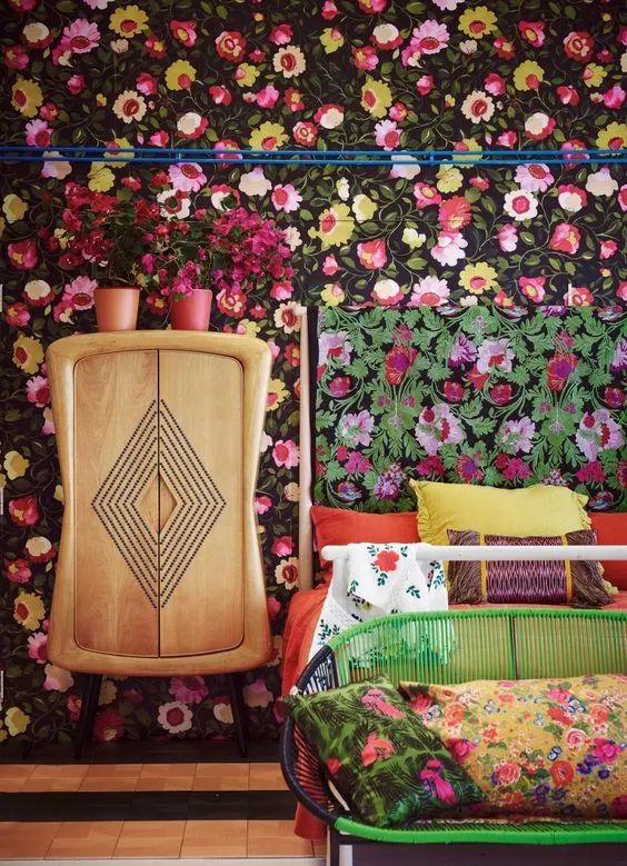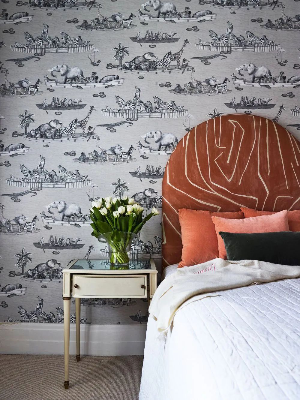 你可能不会期望在空间中看到蓝色和红色并排放置。它们既不被视为完全对比,也不被视为互补色。然而,这个案例中,他们搭配的很好。使用截然不同的颜色的诀窍是将它们保持在不同的区域。在这里,深红色构成了床,而蓝色构成了壁龛周围的框架——他们在一起,但并不完全相遇,而是由白色的檐口相连。你可以将这种方法应用到天花板和地板上,在两者之间使用更中性的颜色。卷曲的床头板看起来有助于为空间添加一些艺术性,并且使人放松。通过使用那些放松的材料,比如柳条、藤条它们都代表着海滩风情,这会让床头板看起来不正式,但是可以让它保持波西米亚风。这也恰好是卧室的主要趋势。主卧室配有洗过的亚麻床上用品、用绳子包裹的床头柜和有质感的陶瓷台灯。藤条床头板带来俏皮的复古气息,并在整个家庭中延续温暖的感觉。设计师喜欢黑色的卧室。黑色非常适合墙壁,原因很简单。在黑墙前,一切看起来都很昂贵,果宜家桌子有黑色背景,它看起来就像来自 B&B Italia。。这就是为什么黑色非常适合作为波西米亚卧室创意的基础。设计师招募了一群当地工匠来帮助改造这间现代的白色公寓,并为其注入一种地方特色。悬挂在床后的超大装饰,具有艺术性和对比性的波西米亚精神。选择壁挂以帮助地面空间,并从视觉和材质上平衡下方大型木制平台床。黑暗与光明,田野与线条,平滑与粗糙,华夫格编织的壁挂,选择了深色木炭纤维和金色马海毛来添加微妙的对比和微光。这是一个接近波西米亚风格的卧室,但我们想将其包括在内,因为鸭子面料是如此出人意料,如此令人惊讶,它是波西米亚精神的体现。通常,设计方案的最后一步是由最后添加的房主的个人魅力而创造的。比如鸭图案面料就是一个很好的例子。它起源于客户母亲家的窗帘,出于情感原因,他们希望将其包括在内。这个主题很迷人,它可以为房间带来复古氛围以及情感联系。这个方案看上去很平静,尽管卧室墙纸和床头板是对比如此鲜明。设计师选择具有相同色调的基色,所以它是灰蓝色和灰红色。真正的波西米亚人都会欣赏那种有着历史的艺术设计。就像所有好的波西米亚卧室创意一样,它不是随意组合在一起的。藤条是一个很好的平衡器,它可以让你把很多严肃的作品放在一个房间里,把它们都降低一个档次,让整个空间看起来很放松。因此,就像案例中的卷曲床头板一样,这款大床头板由于其中的藤条感觉更柔软。你可以以各种方式应用它——一间布满条纹和图案的波西米亚卧室,然后配上一些藤制家具,立刻让人感觉更加脚踏实地。