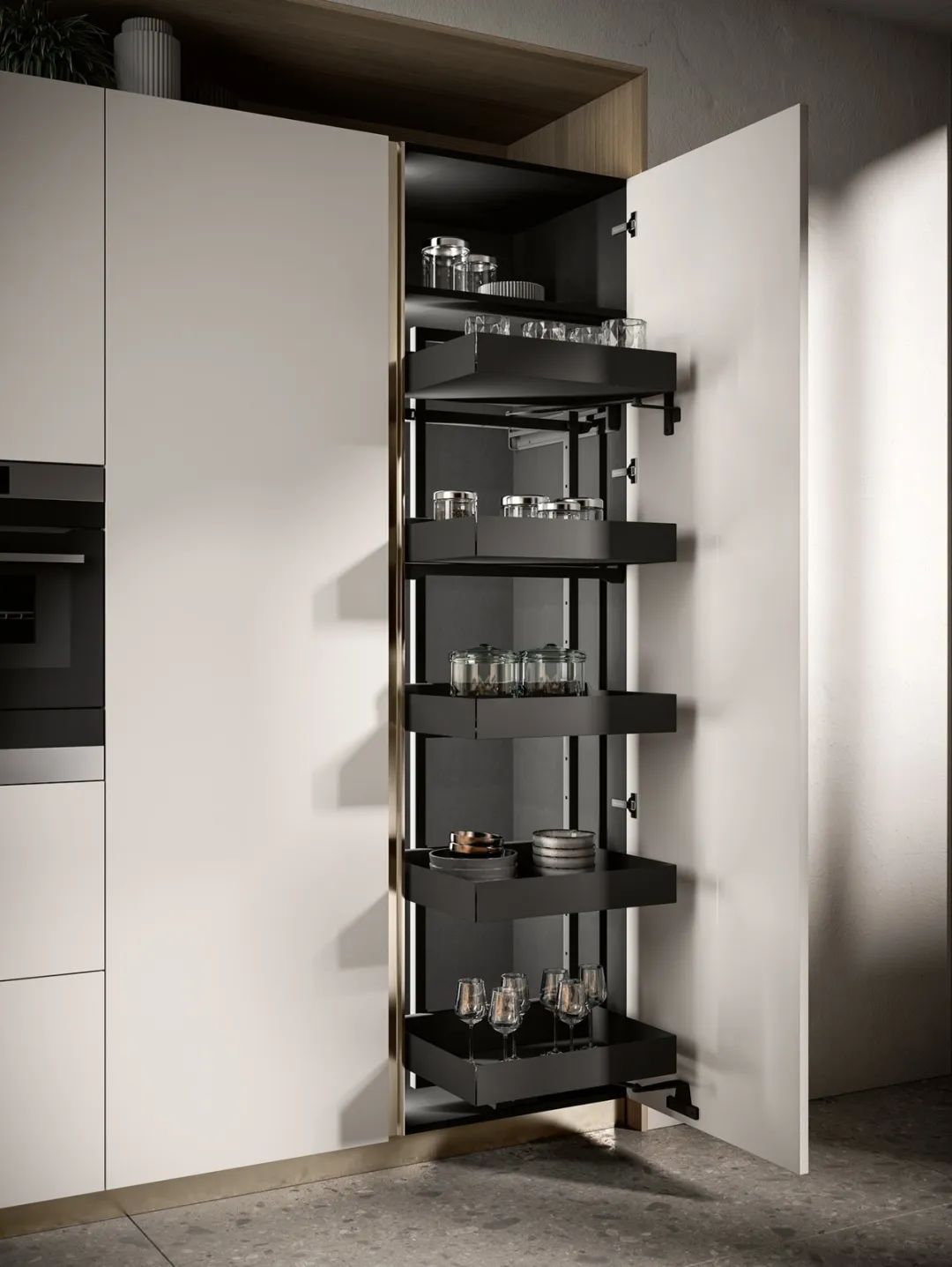 Studiopodrini新作,Febal Casa橱柜系列设计,一种全新动态的、开放式厨房设计趋势,将独特的元素,富有科技感的细节和创新的饰面融入环境之中,具有无限的可能性和组合方式。 以简约设计作为整体背景,让醒目的配件有画龙点睛的效果。把手、台面和储物元素,外观独特、充满个性,尽展高级奢华感。 厨房遵循化繁为简的主题,通过组合式合计手法代来更多可能性,极具纯粹美学效果,又增强了产品的功能性。 利落、简约的直线条拥有一种与生俱来的经典,在确保功能和形式完美结合的同时,通过形状、颜色等个性鲜明的解决方案,充分满足创意家居的需求。 诠释了当代设计最新的设计潮流,通过丰富的搭配选择展示不同的风格效果,风格功能百搭,散发永不过时的经久魅力。 Studiopodrini设计的Artec Futura橱柜系列,真正让厨房变得宽敞而实用,与起居空间无缝衔接,构建全新开放式厨房理念。通过家具实现不同空间的无缝衔接,让厨房成为兼具烹饪和社交功能的场所,可以适应不同的生活方式。 橱柜设计