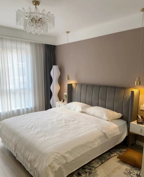本案没有传统法式的奢华、繁华装饰以及甜腻的色彩,运用淡雅的色彩,低调的设计,呈现现代的轻奢感。 精致的吊灯与大理石的桌面形成碰撞,配合极具艺术感的沙发,增加了空间的高级感。 精致的石膏线条增加了空间的层次感,淡雅的配色调和出空间浓郁的法式浪漫。 客餐厅一体,空间流动性强,配合装饰细节,演绎着法式轻奢的浪漫和时尚。 墙漆:床头背景墙:床头背景墙是LB杏仁奶+淡灰。 吊顶:没有做复杂的造型走了一圈二级双眼皮吊顶没有灯带,简单大方。 木地板:我选的灰色系,当时看了很多款对比之下大自然朦胧时光是暖灰色系就选了这个结果没有失望。 衣柜:家里所有的衣柜,厨房柜,阳台柜都是木工做的,莫干山板材(雅格白)板材有纹路,把手都是选用金色铜把手做一下点缀。 丝绒床:主卧因为有了这张丝绒床颜值飙升,手感和外型都很赞。 水晶灯:为了搭配这款床,主灯搭配了小法式轻奢水晶灯,三色变光,不开灯也很美。 四件套:白色是我喜欢的颜色,手感丝滑有质感,刺绣也很精致。 床垫:床垫真的让我体验了什么叫幸福感,乳胶+椰棕,乳胶床垫防螨比较好,而且够舒服,没有味道符合我的睡眠要求。 豆子枕:最近都是抱着我的绵豆枕睡觉,真的好舒服,像是枕在云朵里,睡到自然醒是多么幸福的一件事。 以上就是关于法式轻奢装修效果图的全部介绍了,希望能给大家带来帮助。