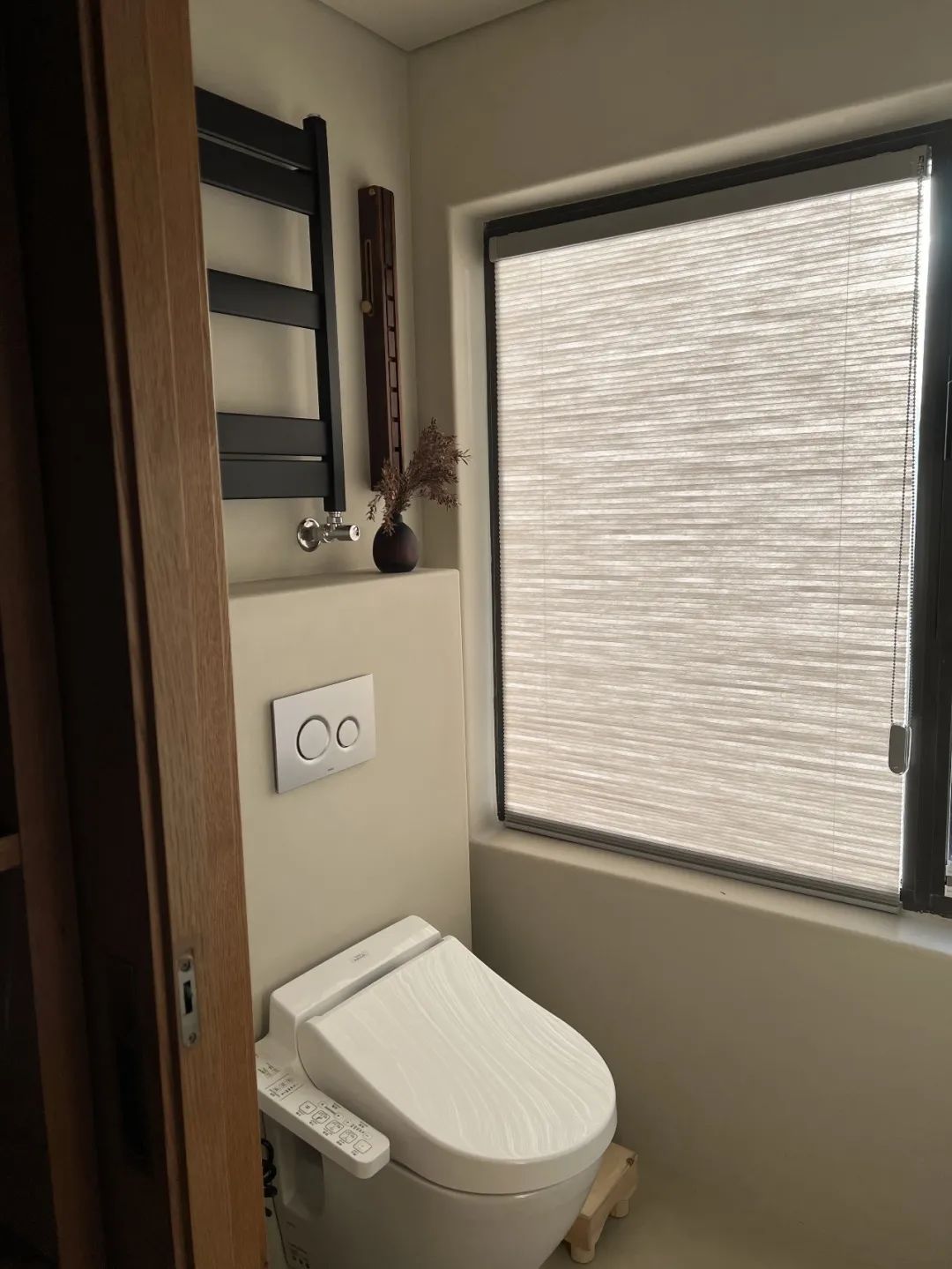 还有看似是为了设计效果统一而定制的木制百叶窗,实际是能帮助改进南向房间进光量过高的问题,让室内温度始终维持在令人舒适的水平。